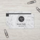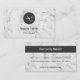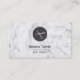 Esta tarjeta de visita utiliza un fondo de mármol de la textura, y una paleta de color intemporal con clase del negro, del gris y del blanco para comunicar un sentido del ajuste lujoso para el cliente. En negro es el icono de la silueta de un par de scissor. Grande para los profesionales del corte del pelo tenga gusto de los peluqueros, de los estilistas y de los salones de pelo. Usted puede también quitar el fondo de mármol para mantenerlo minimalista.