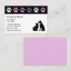 Tarjetas de visita de moda para el cuidado de mascotas con elegantes y coloridas fotografías gráficas de pata junto con un perro y un logo de gato. Una plantilla editable que se puede personalizar en línea con color de fondo de color coordinado. Perfecto para cualquier persona que haga mascota grooming, tiene un salón mascota, o un mascota profesional, una niñera mascota o incluso un veterinario.