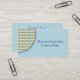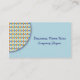 Tarjetas de visita decorativas que presentan un diseño de patrón de triángulo de medio círculo en la esquina izquierda con fondo azul claro. Personalizar las tarjetas de visita con el nombre y el lema de su empresa en la parte delantera. Agregue la información de los empleados en la parte posterior. Asegúrese de editar todos los campos de texto en estas tarjetas de presentación personalizadas.