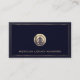 Dejar una impresión duradera con nuestra elegante tarjeta de visita de planeamiento de fincas con logotipo de oro. El fondo de la impresión de cuero azul y el emblema del logo dorado cepillado ofrecen un toque elegante, perfecto para los planificadores inmobiliarios, abogados, asesores y cualquier profesional de negocios que busca dejar una impresión duradera. Red con confianza y muestra tus detalles profesionales.
