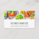 Esta plantilla de tarjetas de visita personalizada para la impresión a petición de alimentos limpios, salud, bienestar, alimentos orgánicos saludables, restauración de alimentos saludables, restaurante de comida saludable, revolución verde, productos orgánicos, negocio de granja a mesa, granja orgánica, mercado de agricultores y más. ¿Todavía no encuentras lo que te gusta? Visite nuestra página de inicio de la tienda para más ideas y plantillas de tarjetas de visita. - El diseño presenta comida sana, aguacate y verduras en colores vivos verde, naranja, amarillo y blanco sobre fondo blanco.