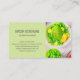 Esta plantilla de tarjetas de visita personalizada para la impresión a petición de alimentos limpios, salud, bienestar, alimentos orgánicos saludables, restauración de alimentos saludables, restaurante de comida saludable, revolución verde, productos orgánicos, negocio de granja a mesa, granja orgánica, mercado de agricultores y más. ¿Todavía no encuentras lo que te gusta? Visite nuestra página de inicio de la tienda para más ideas y plantillas de tarjetas de visita. - El diseño presenta comida sana, aguacate y verduras en tonos verde, naranja, amarillo y blanco en el fondo del Tea Green.