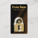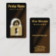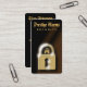 © Sunny Mars Designs. Esta tarjeta de seguridad incluye un candado de oro luminoso y un icono de una casa. Perfecto para empresas de seguridad y cerrajeros