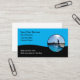 Tarjetas de visita Guay para un servicio de piscina creado con un emblema gráfico de una piscina siendo atendida y un texto personalizado editable que puede personalizar en línea.