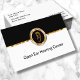 Elegantes tarjetas de visita diseñadas con un emblema auricular de tono dorado en esta elegante plantilla de diseño de dos caras que puede personalizar en tiempo real. Diseñado para un Audiólogo, una clínica de audífonos o una oficina de Médicas de atención auditiva,