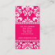 Las tarjetas de visita elegantes del damasco del monograma son perfectas para cualquier profesional que necesite una tarjeta de visita elegante con todo moderna para la gran primera impresión de Elke Clarke ©2009. Más diseña disponible en strictlybusinesscards.blogspot.com. "Personalizar selecto él" para cambiar el texto de la muestra y para corregir el espaciamiento, la selección de la fuente y más. Personalizable con sus fuentes de la información y del texto. El fondo se puede hacer más grande o más pequeño dependiendo del espacio requerido para el texto. Si usted desea hacer que un diverso color para el damasco por favor me entre en contacto con y me placeré diseñarlo para usted en el plazo de 24 horas sin costo extra.
