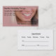 Tarjetas de visita dentales con imagen de una sonrisa en la disposición del fondo y del texto que usted puede modificar para requisitos particulares en línea, incluyendo una tarjeta de la cita en la parte posterior. Diseñado para un dentista, el cirujano oral, o los temas se relacionó con las dentaduras y los implantes.