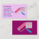 Este moderno y elegante ilustracion de diseño está decorado con una lata de pintura rosada que gotea de la tapa y un gran rodillo de pintura rosa. ¡Estas divertidas tarjetas de visita son perfectas para decoradores, pintores o diseñadores de interiores!