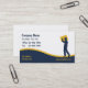 Tarjetas de visita del mensajero con el hombre de entrega que lleva un paquete. Plantilla simple de la tarjeta de visita para un servicio de entrega, un naviera, o una entrega del paquete.