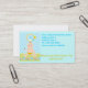 Tarjeta de visita diurna, con una imagen de un bebé sosteniendo una botella sobre un fondo azul de un punto polka. Tiene un texto que dice, donde lo más pequeño aprende mucho. Hay un círculo para tu logo y al otro lado hay espacio para toda tu información de negocios. Todo se puede personalizar a tu negocio.