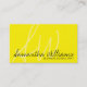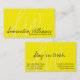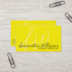 Haga una primera impresión fantástica con estas elegantes tarjetas de visita amarillas y soleadas. Estas tarjetas de visita tienen un fondo amarillo sólido. Incluyen una letra manuscrita con sus iniciales en amarillo más claro en el fondo. En la parte delantera, hay espacio para tu nombre y título. En la parte trasera, dice "Mantente en contacto" y permite espacio para seis líneas de información de contacto como número de teléfono, número de teléfono celular, número de fax, dirección de correo electrónico, identificadores de medios sociales, tu sitio web o cualquier otro método de contacto que tus conexiones de negocios usen. Se trata de un estilo de tarjeta de visita genérica que puede utilizarse para casi cualquier tipo de negocio, como consultores, diseñadores gráficos, empresarios, agentes inmobiliarios, cosmetólogos, peluqueros, abogados y miles de otras profesiones y títulos de trabajo.