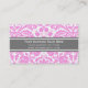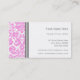 Tarjetas de visita en modelo floral elegante y del vintage del damasco en rosas bebés, blanco y gris brillantes modernos. Personalizable con sus detalles del contacto, elegante y contemporáneo. Éntrenos en contacto con para un color de encargo.