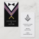 Una elegante tarjeta de visita morada y dorada freemason para repartir en todos tus eventos masónicos. En la parte delantera de esta tarjeta de visita masónica personalizada se encuentra la joya del cargo del Maestro Adorable sobre un esmoquin negro y corbata de arco. La parte trasera es blanca y muestra un cuadrado masónico y una brújula. Esta tarjeta complementa otras tarjetas de programa de personalizado freemason, invitaciones y más en esta colección. Excelente para su instalación anual de oficiales...