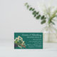 Plantilla de tarjeta de visita para el herborista o vendedor de hierbas. Color verde azulado oscuro con texto blanco al personalizar en tres lugares del frente. Incluya el nombre en el guión, "herbolario" u otro texto impreso debajo y más información en el párrafo siguiente. Todo el texto se alinea a la derecha. El diseño presenta flores de fevernus blancas, raíz de regaliz y moras moradas oscuras. La imagen de la hierba está en el lado izquierdo. La parte posterior de la tarjeta es de color blanco claro con un patrón de fondo de flores finas y floridas.