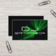 Tarjetas de visita intrépidas modernas de DJ. Negro de Business© de las costuras, foto verde de la silueta de DJ con la fuente retra para el texto. Simple limpie el diseño. Completamente adaptable.