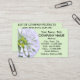 La planta de zinnia, flores y hojas, fue utilizada por muchas tribus del suroeste como hierbas medicinales y rituales. Algunos han dicho que la tribu Navajo considera a la zinnia como una de las medicinas sagradas de la vida. Otros, Pueblo, se cree que las tribus creen que la zinnia es un símbolo de sabiduría. La zinnia en sí misma es representativa de una amistad, constancia y afecto duraderos. La zinnia blanca, específicamente, es simbólica de bondad y pureza del corazón. Hasta 1957, cuando fue reemplazada por la peonía, la zinnia también tenía la distinción de ser la flor estatal de la India. La hermosa floración hace de esta una fabulosa elección de diseños para una tarjeta de visita. La floración se presenta en un fondo verde pálido y de primavera. Puede cambiar el color del fondo y, por supuesto, querrá cambiar la información en la parte delantera y trasera de la tarjeta.