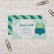 Tarjetas de visita lindas del búho de la turquesa