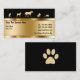 Tarjetas de visita clásicas Pet Care con imágenes de un elegante animal de oro simulado que incluye un perro, un gato, un caballo, un conejo y una tortuga con una huella de pata en la parte de atrás, junto con un gran diseño de texto que ahora puedes personalizar. Elegante tarjeta para el cuidado de mascotas que hace una gran plantilla para un veterinario técnico, un mascota, un hospital de animales o una tarjeta veterinaria.