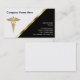 Tarjetas de visita médicas con diseño moderno que incluye un símbolo médico de color dorado, línea geométrica de apariencia elegante, un diseño simple de tarjeta de visita que le permite personalizar el texto y cambiar el color de fondo negro si lo desea. Diseñé esta plantilla de tarjetas de visita como un diseño único y moderno para un profesional de la salud, una clínica médica o cualquier negocio de la industria de la salud.