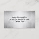 ¡Ponga su nombre o el nombre de compañía en el letrero metalizado de la mirada de la plata 3d! Una superficie metalizado de la mirada en cromo del grunge del acero inoxidable es una tarjeta de visita de mirada intrépida, única, profesional. Fácilmente personalizar con su propia información. Una tarjeta de mirada hermosa y fuerte, especialmente grande para los empleos industriales, de la construcción y de la construcción. Más información se puede poner en la parte posterior también sobre el mismo fondo metalizado. Impreso en el papel, metal no real. Una tarjeta de visita fuerte que se destaca del resto.