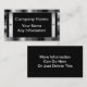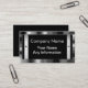 Un marco metálico de la mirada con los pernos para la profundidad añadida en el cromo de plata de la mirada del acero inoxidable en el frente de la tarjeta con un fondo negro pulido da una tarjeta de visita de profesional-mirada de la mirada intrépida, única 3d. Fácilmente personalizar con su propia información. Utilice la fuente elegante de los gris plateados a juego mostrada o cambie fácilmente el estilo de fuente y coloréelo. Una tarjeta de mirada única, especialmente grande para los comercios industriales, expertos en la construcción, el edificio o automotriz, etc., empleos. Más información se puede poner en la parte posterior también en el mismo fondo negro. Cambie fácilmente el fondo negro a cualquier otro color. Apenas haga clic en el "personalizar él" y después haga clic en "corrigen" y entonces "fondo" para cambiarlo. Una tarjeta de visita fuerte, única que se destaca del resto.