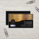 Plantilla de tarjeta de visita inmobiliaria con un elemento de diseño de oro simulado y un símbolo de casa de oro impreso, junto con un gran diseño de texto que puede personalizar fácilmente en línea. Diseñado como una tarjeta de perfil para un agente inmobiliario, agente inmobiliario o agente de MLS.