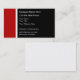 Tarjetas de visita modernas de moda con color de fondo negro que usted puede modificar para requisitos particulares, colores de acento rojos y blancos, y disposición fácil del texto usted puede personalizar. Diseñado como tarjeta de visita para cualquier negocio, empleo del trabajo, o industria. El diseño moderno es ojo que coge y será recordado.