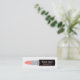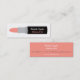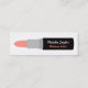 Una tarjeta de visita moderna y contemporánea que tiene un diseño de un lápiz labial con el espacio en el palillo para la personalización de detalles. El color del lápiz labial está en una sombra anaranjada amelocotonada ligera. Este diseño delgado y liso de la tarjeta de visita es grande para los artistas de maquillaje, los estilistas y ésos en los negocios de la belleza.