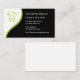 Plantilla moderna de la tarjeta de visita del dentista en un elegante diseño que incluye un símbolo y un verde feliz del diente, blanco, y la combinación de color del negro que se destaca realmente. Modifique el texto para requisitos particulares la manera que usted quiere. Deigned para una oficina y un personal del dentista, grupo dental o clínica.