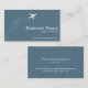 Estas tarjetas de visita del viaje son perfectas para los agentes de viajes, las agencias de viajes, los pilotos, los viajeros de mundo, los bloggers del viaje, y más. La tarjeta ofrece una impresión texturizada del fondo del azul de acero, con un aeroplano con el rastro del aire en el frente. Hay sitio para su nombre comercial (o su nombre), un tagline y un Web site. La parte posterior tiene sitio para sus detalles del nombre y del contacto.