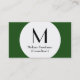 ¡Estas tarjetas de negocios genéricas de diseñador son excelentes para cualquier empresa! Incluyen una imagen de círculo, fondo sólido, monograma personalizado y la información de contacto de su personalizado. Para más opciones de personalización, como estilos de fuente y colores de fuente, haga clic en el botón "Personalizar".