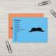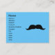 ¡Estas increíbles y divertidas tarjetas de bigote son perfectas para cualquiera con sentido del humor! Si pones una de estas cartas debajo de la nariz, ¡tienes un disfraz instantáneo de bigote! ¡Dale un bigote a todos tus amigos sólo por diversión! ¡Estas tarjetas son excelentes para el trabajo en red de forma elegante! Personalizar con su información de contacto (dirección de correo electrónico, dirección postal, número de teléfono, número de teléfono o cualquier otra cosa que desee).