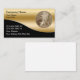 Tarjetas de visita de un distribuidor de monedas con una imagen real de una moneda y un diseño de fondo y texto de aspecto metálico fresco que puede personalizar. Las mejores tarjetas de visita para cualquier persona involucrada en la recolección de monedas, negocios numismáticos o inversiones.