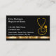 Plantilla de diseño de tarjetas de visita de enfermería de de salud domiciliaria o enfermera registrada de clase creada con elementos de diseño de tono dorado, incluyendo un gráfico de estetoscopio que tiene un toque de bling.
