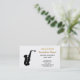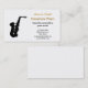 Tarjetas de visita para jugadores o instructores de saxofón; diseño musical blanco y dorado con silueta de saxofón; el diseño se personaliza con campos de texto de personalizable para agregar su nombre, negocio, dirección y otras informaciones