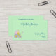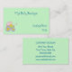 Tarjetas de visita de personalizable personalizadas que incluyen un gráfico de un coche de bebé con un fondo verde menta. Personalice todos los campos de texto con su estilo de fuente y color favoritos. TODAS las tarjetas de visita pueden ser imprimidas a dos caras sin cargo adicional.