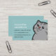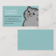 Estas tarjetas de visita temáticas personalizadas del gato están listas para modificar para requisitos particulares con su nombre e información de contacto. Grande para cualquier persona que trabaja con los mascotas o ama gatos, incluyendo veterinarios, negocios de la fuente del mascota, groomers, canguros del mascota, criadores de gato y más. Ofrece un dibujo animado lindo de un gato de tabby de plata gordo. El color de fondo puede ser cambiado. Apenas haga clic el botón del "personalizar".