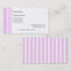 Tarjetas de visita personalizado con rayas rosas en rosa claro, rosa oscuro y blanco. Haga clic en Personalizar para cambiar los colores de fondo, seleccione los tipos de letra y agregue texto personalizado y mucho más, incluso guarde el diseño para más adelante.