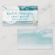 Tarjetas de visita con agua del océano e imágenes de conchas marinas. texto azul marino personalizar en tres líneas sobre un panel blanco. Las cartas están decoradas con un dólar de arena blanca y una estrella de mar o una estrella de mar. La primera línea está en script y puede ser para un nombre personal o comercial. La segunda línea es para el servicio ofrecido o la profesión. La tercera línea es para contacto / ubicación / sitio web en línea. Es posible que el diseño no se ajuste a todos los tamaños de tarjeta de visita.