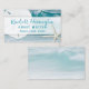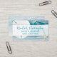 Tarjetas de visita con agua del océano e imágenes de conchas marinas. texto azul marino personalizar en tres líneas sobre un panel blanco. Las cartas están decoradas con un dólar de arena blanca y una estrella de mar o una estrella de mar. La primera línea está en script y puede ser para un nombre personal o comercial. La segunda línea es para el servicio ofrecido o la profesión. La tercera línea es para contacto / ubicación / sitio web en línea. Es posible que el diseño no se ajuste a todos los tamaños de tarjeta de visita.