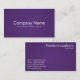 ¡Mantenga las cosas simples con estas tarjetas de visita modernas y profesionales! El frente y la parte posterior contienen el texto blanco en un fondo púrpura. El frente contiene el sitio para su nombre y dirección de compañía, mientras que la parte posterior contiene el sitio para su nombre, el cargo, y cualquier detalle del contacto que usted quisiera añadir a la tarjeta. ¡Una gran tarjeta para los individuos o el mundo corporativo!
