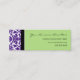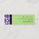 Tarjetas de visita en la púrpura oscura elegante y moderna, verde lima, modelo floral clásico blanco y negro del damasco. Personalizable con sus detalles del contacto, elegante y femenino.