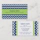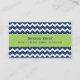 Tarjetas de visita de la mamá en la diversión y el modelo de las rayas de los zigzags del galón del vintage en azul marino brillante moderno del verde lima, blanco y oscuro. Personalizable con sus detalles del contacto, elegante y contemporáneo, la de manera perfecta de poner fechas del juego o de guardar el contacto con las mamáes del playgroup. Éntrenos en contacto con para un color de encargo.