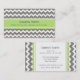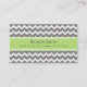 Tarjetas de visita de la mamá en la diversión y el modelo de las rayas de los zigzags del galón del vintage en gris brillante moderno del verde lima, blanco y oscuro de carbón de leña. Personalizable con sus detalles del contacto, elegante y contemporáneo, la de manera perfecta de poner fechas del juego o de guardar el contacto con las mamáes del playgroup. Éntrenos en contacto con para un color de encargo.