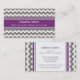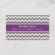 Tarjetas de visita de la mamá en la diversión y el modelo de las rayas de los zigzags del galón del vintage en gris de carbón de leña púrpura, blanco y oscuro oscuro moderno. Personalizable con sus detalles del contacto, elegante y contemporáneo, la de manera perfecta de poner fechas del juego o de guardar el contacto con las mamáes del playgroup. Éntrenos en contacto con para un color de encargo.
