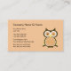 Tarjetas de visita del tema del búho con imagen del símbolo lindo del búho en el frente y toda su información de compañía. Personalice el color de fondo, espacio del texto, y haga que trabaja. Diseñado para cualquier cosa se relacionó con la educación, el cuidado de niños, o los servicios de los niños.
