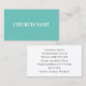 Un diseño verde azulado y blanco minimalista sencillo y moderno con el nombre de la iglesia delante y el nombre de la iglesia/los detalles en negro detrás. Tarjeta de visita profesional de la iglesia.