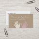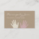 Dé masajes a las tarjetas de visita de la terapia en una mirada moderna con las manos del masaje, plantillas del texto que usted puede personalizar en línea, e incluye la impresión bilateral. Diseñado para una masajista, un terapeuta, o un balneario.