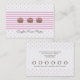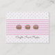 Añade el lindo factor a tu dulce tienda con estas tarjetas de visita de Kustom By Kris. En la parte delantera hay tres deliciosas trufas en un fondo de rayas rosas con puntos de polka rosa. Añada su nombre de negocio al frente y los detalles de contacto a la parte posterior, junto con un incentivo para estimular la repetición de negocios.