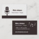 Un diseño del icono de la silueta de un micrófono en poner en contraste negro pardusco oscuro con blanco. En el revés son las notas musicales. Grande para cualquier persona que es un coche vocal, cantante o en la industria musical. Personalice fácilmente con sus detalles del contacto en el fácil leer el texto.